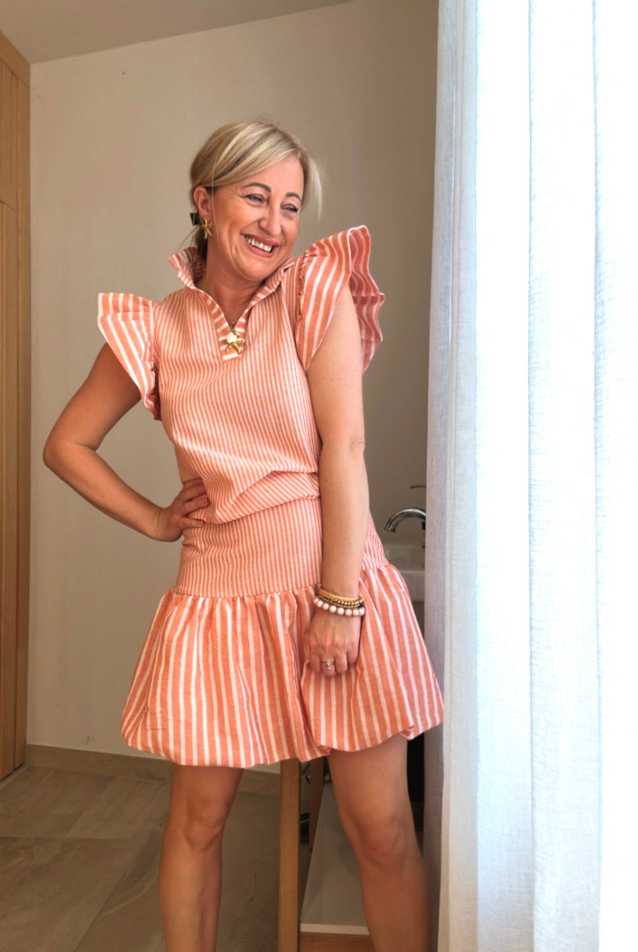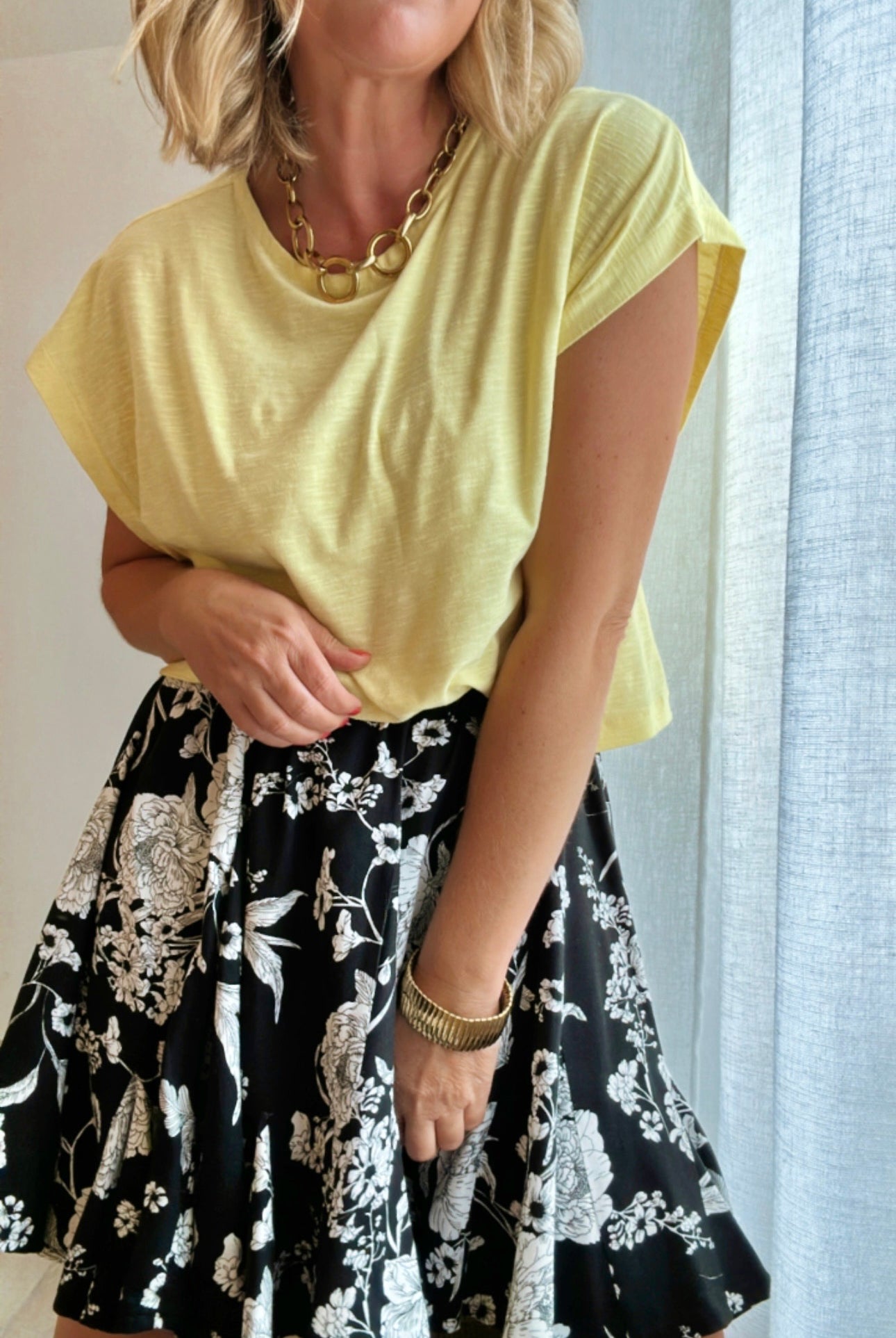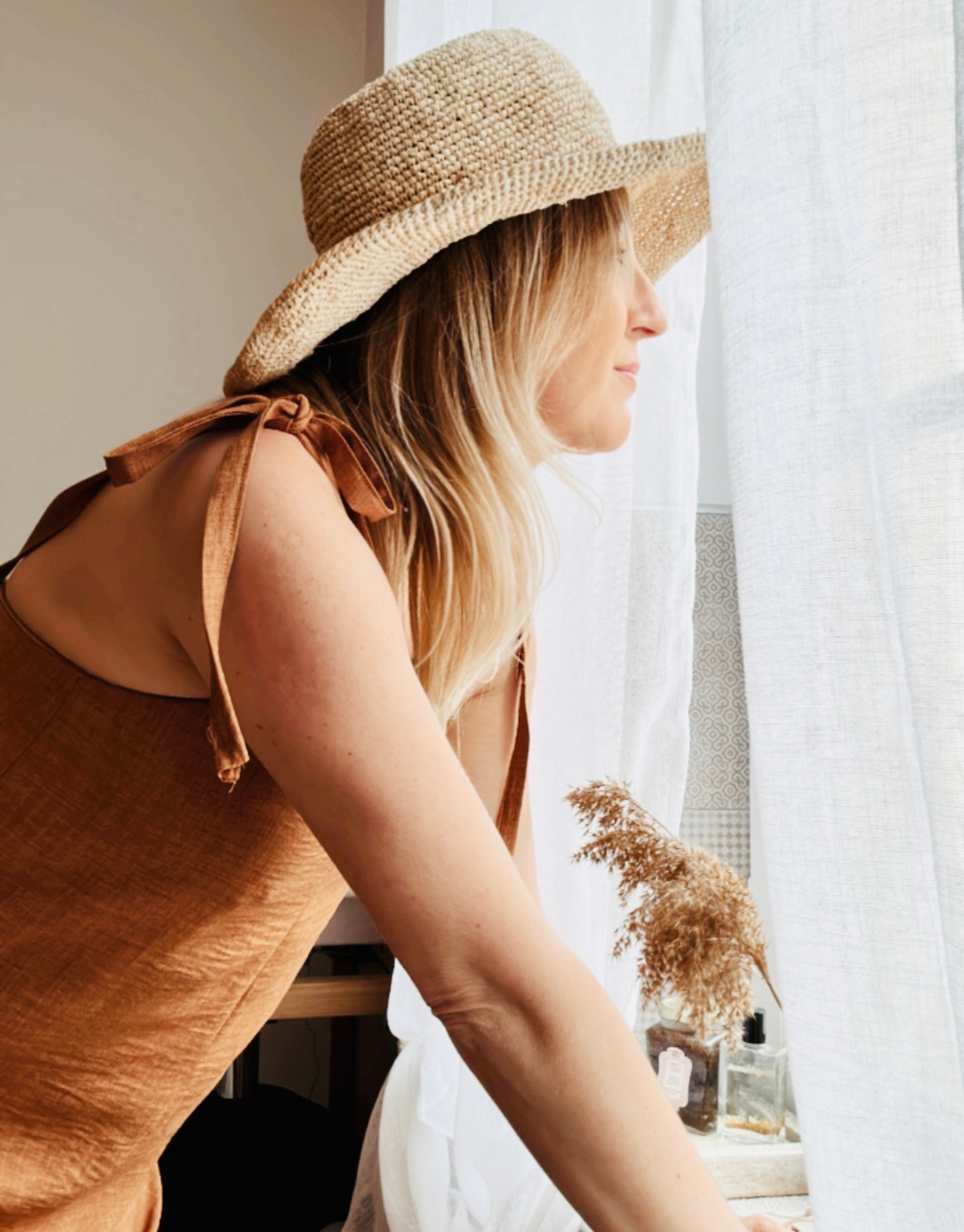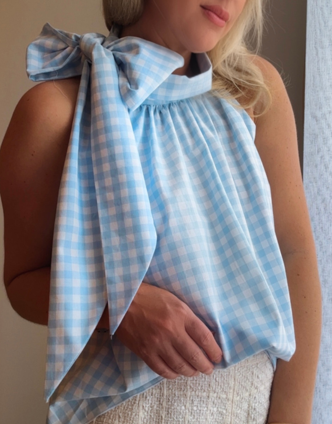 "Après avoir cousu deux robes Liya avec beaucoup de plaisir, j'ai décidé de me lancer dans la réalisation d'une blouse avec le même patron. Cette fois-ci, j'ai opté pour un coton assez épais, très différent des matières utilisées pour mes précédentes cousettes. Le rendu est vraiment surprenant : l'épaisseur du coton donne un aspect très différent de celui d'un tissu fluide. De plus, le tour de cou offre de nombreuses possibilités de personnalisation, pouvant se nouer de diverses manières et à différents endroits. Le patron Liya est à la fois très polyvalent et très facile à utiliser, ce qui en fait un indispensable dans ma patrontèque."