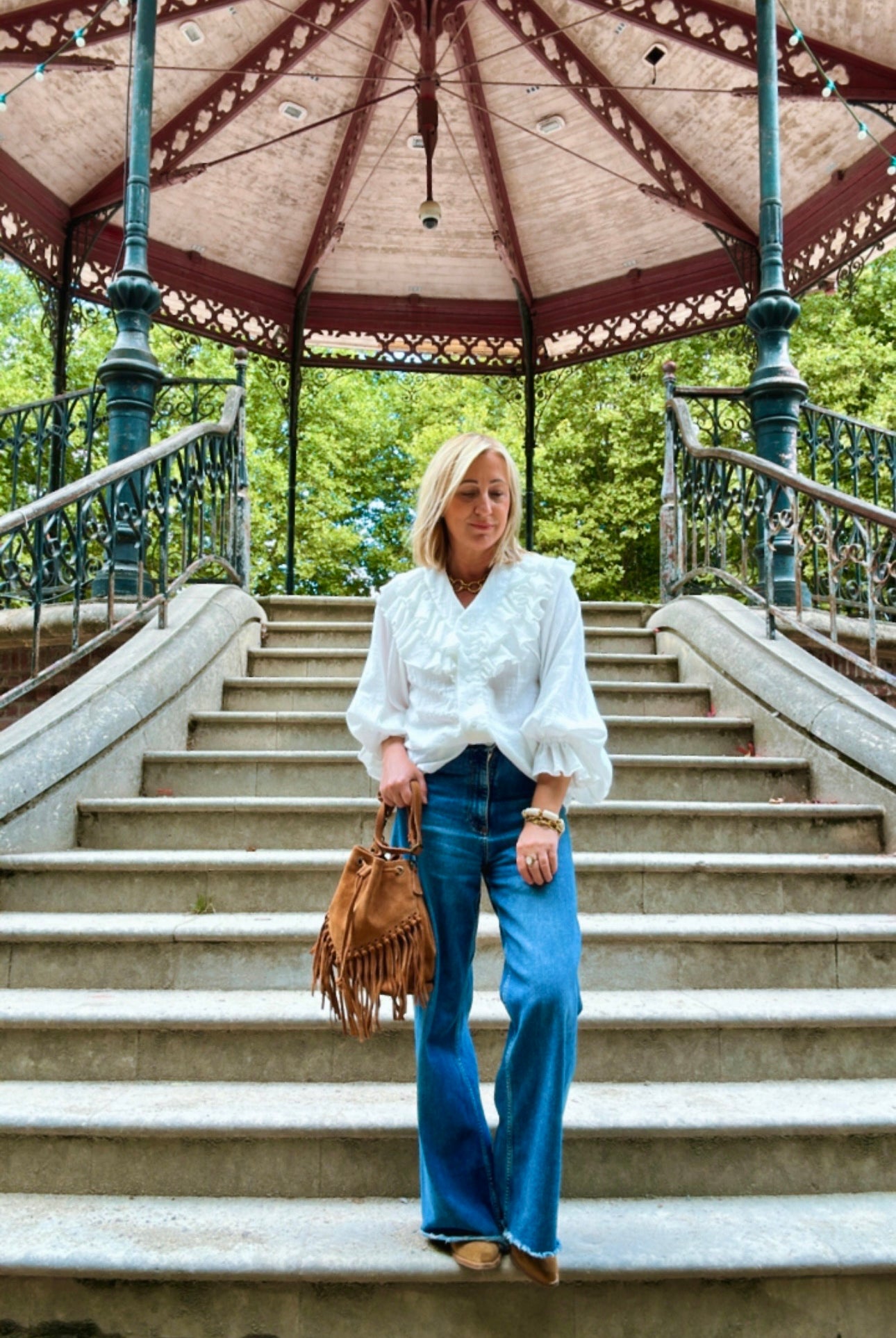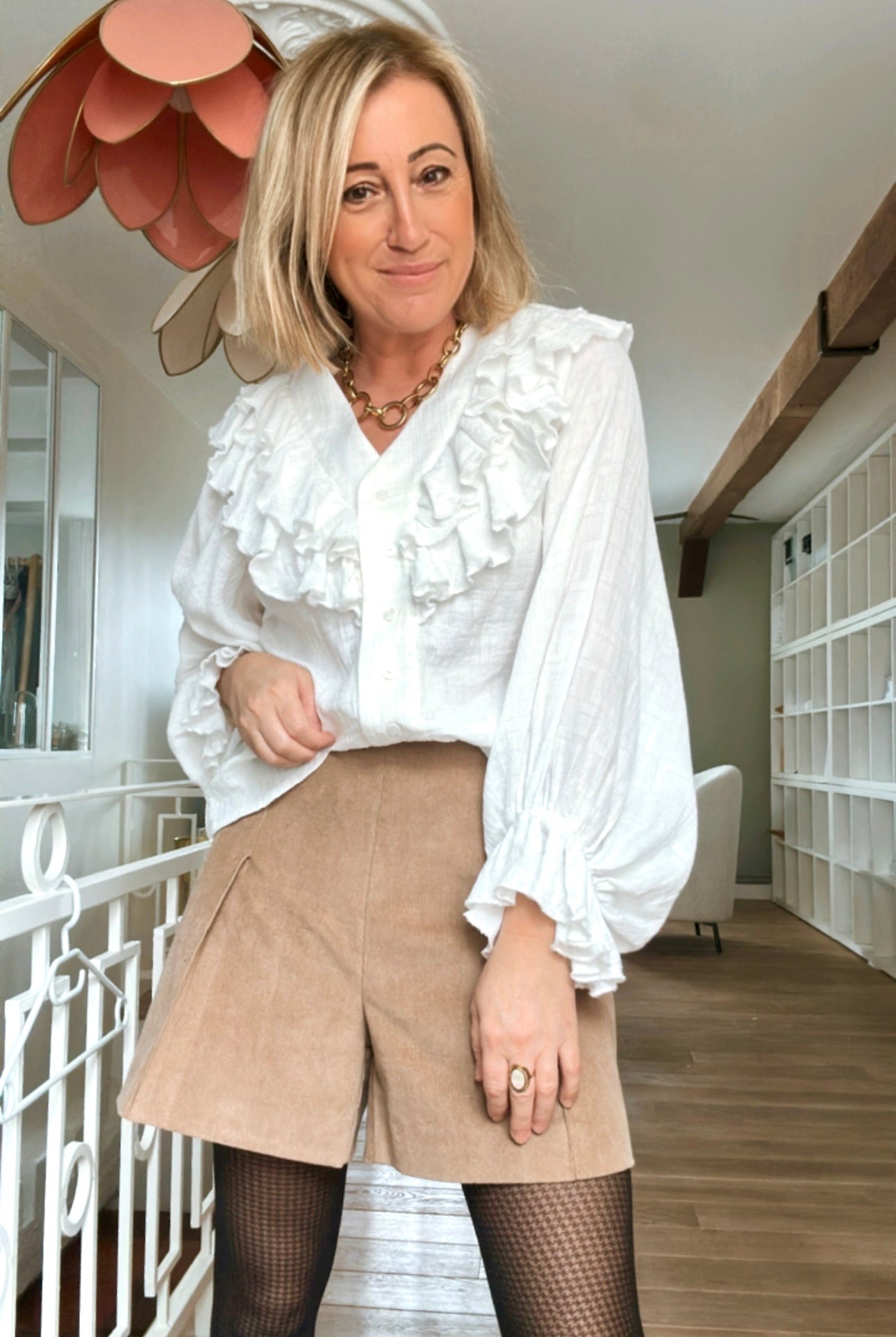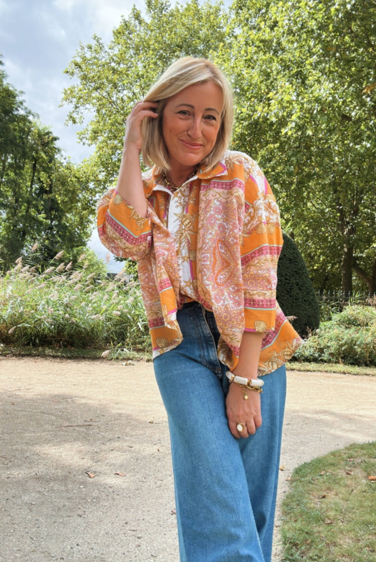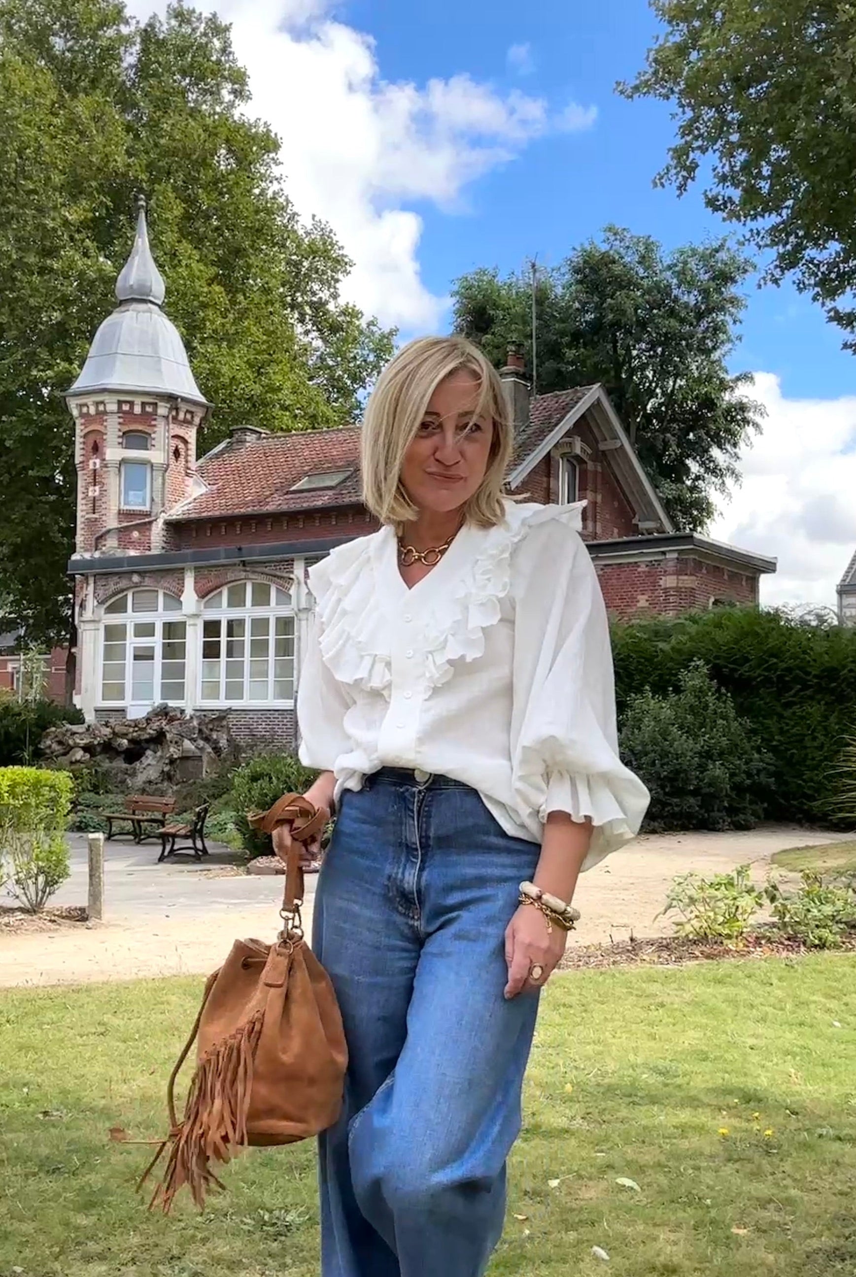 "Le Chemisier Mademoiselle est la chemise parfaite quand on veut être à l’aise. Elle a un effet loose qui la rend très classe. Elle ira à toutes les morphologies. "