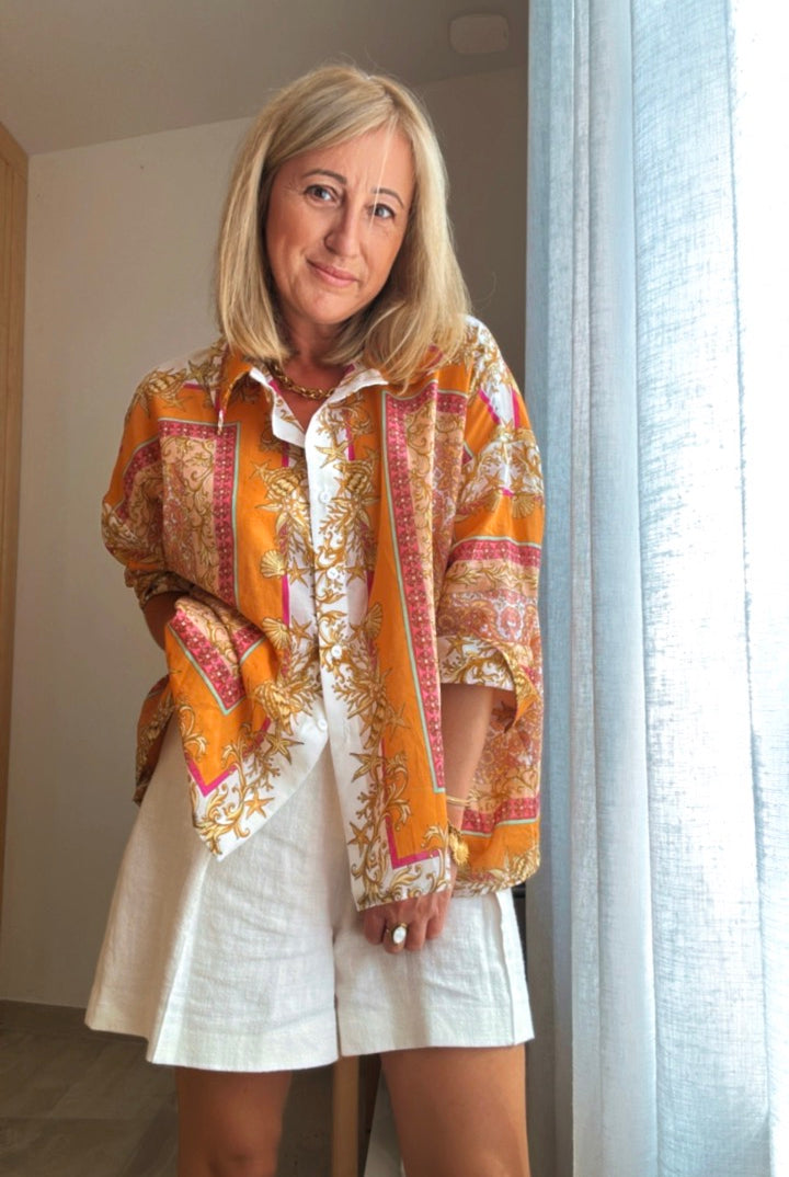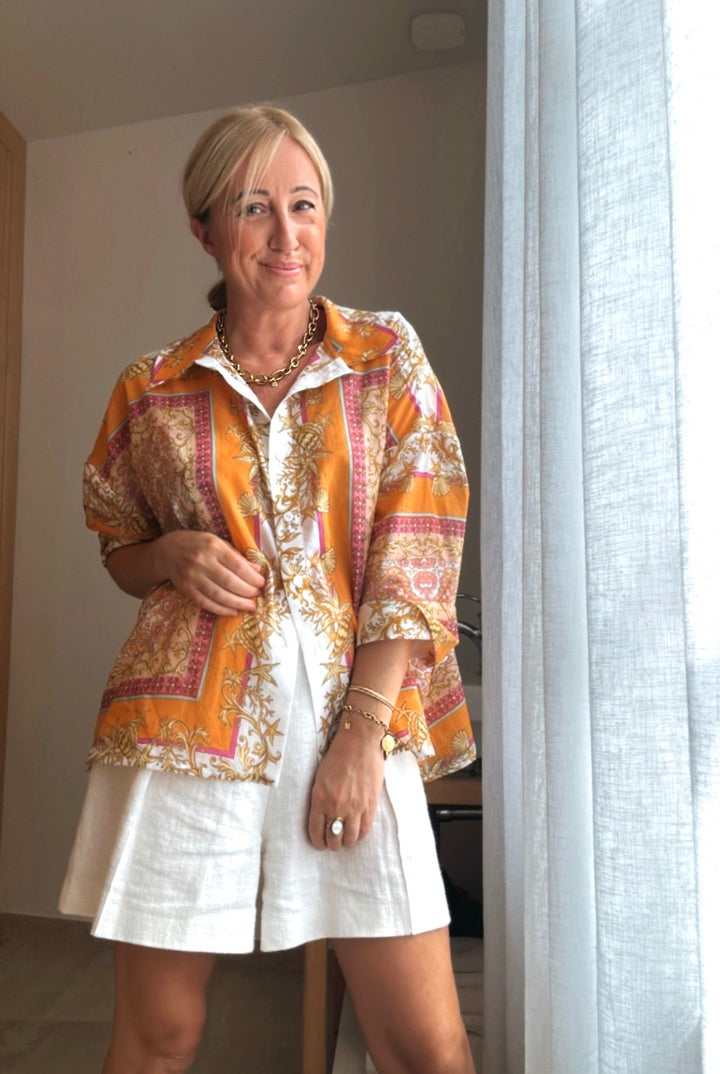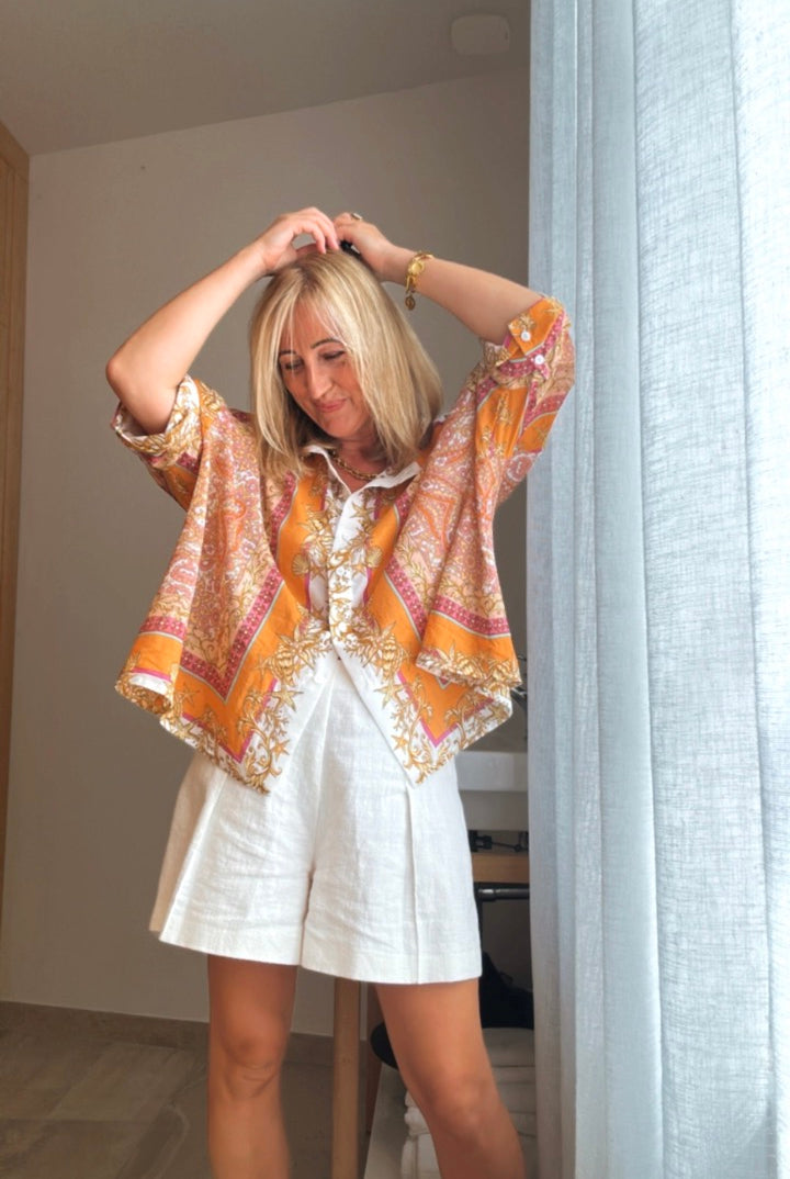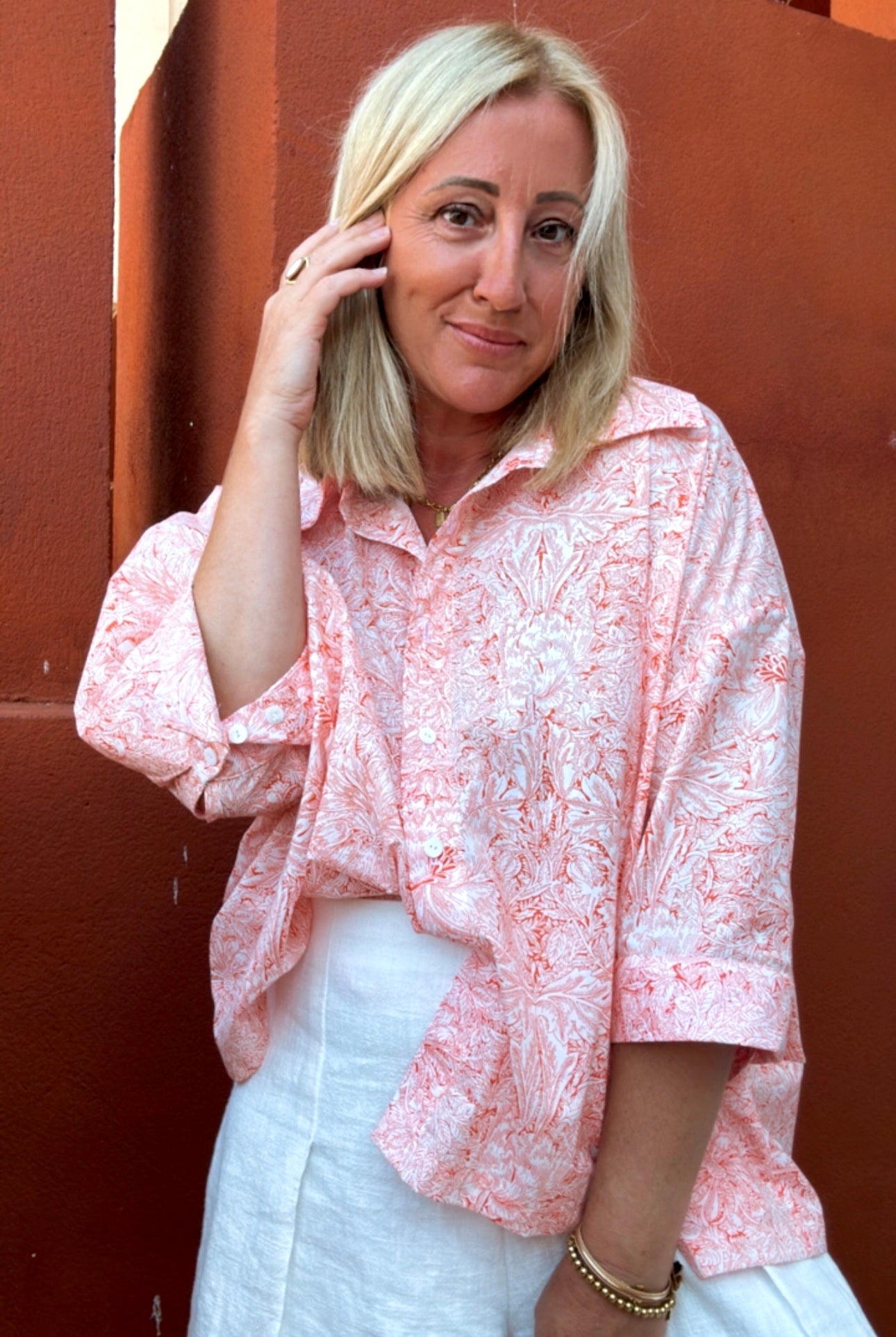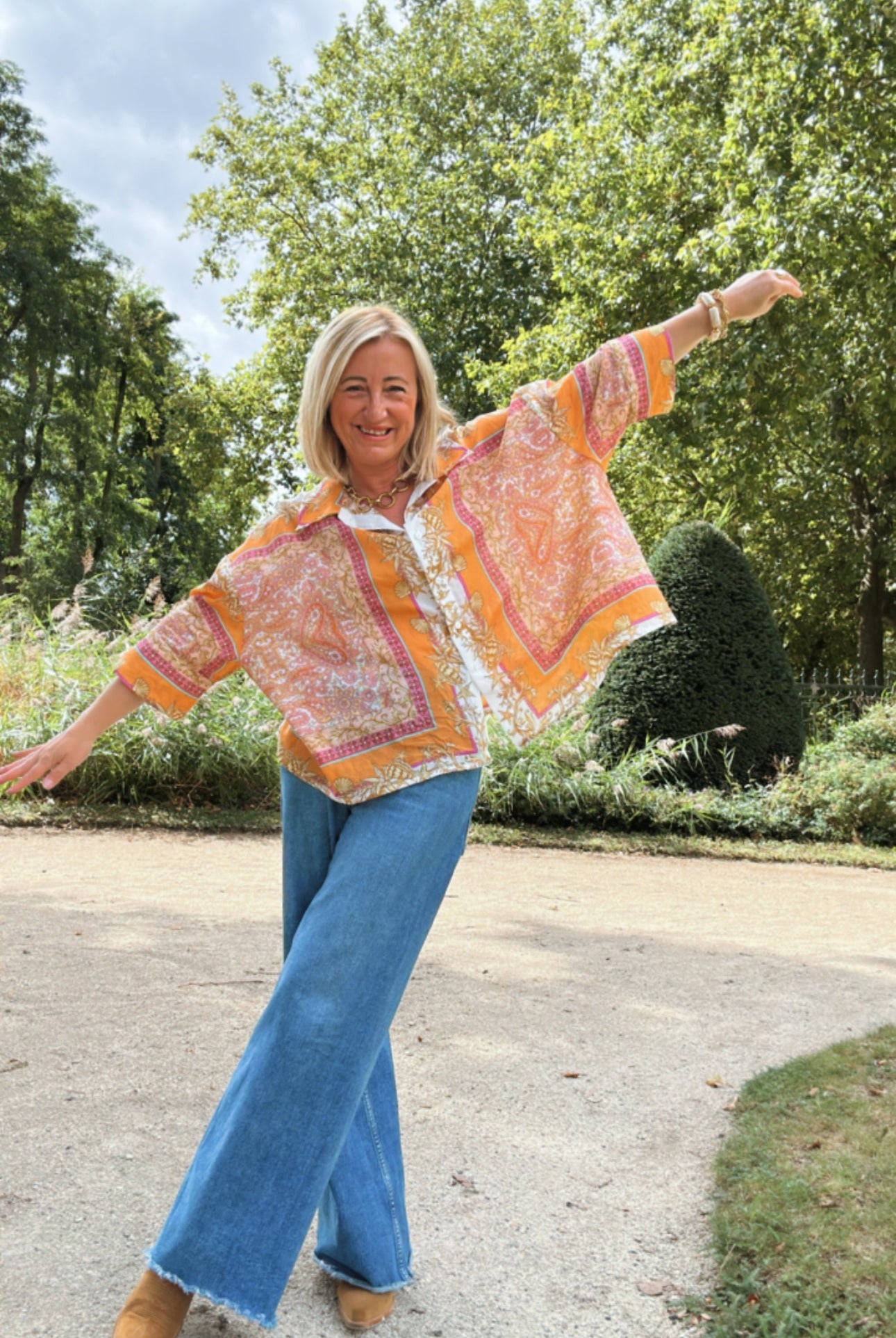 "Le Chemisier Mademoiselle est la chemise parfaite quand on veut être à l’aise. Elle a un effet loose qui la rend très classe. Elle ira à toutes les morphologies. "