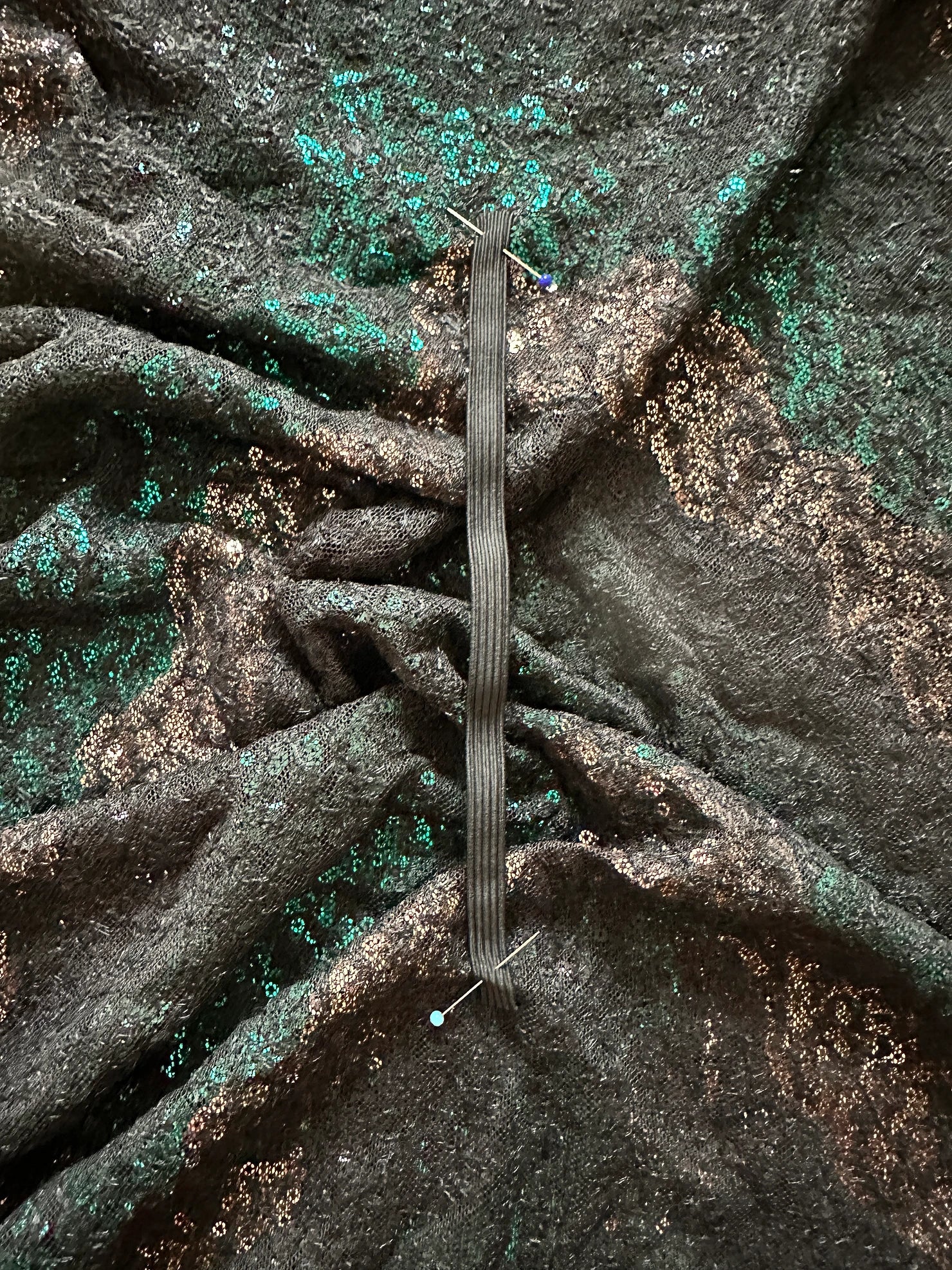 Pour la ceinture, j'ai fixé un élastique comme sur la photo ci-dessous, que j'ai ensuite replié vers l'intérieur.