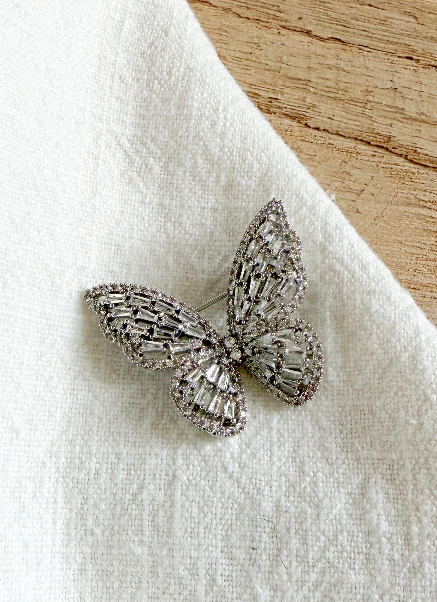 Broche papillon argenté