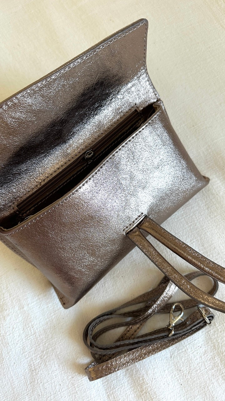 Un sac pochette en cuir élégant et félicité, conçu pour être porté à la main ou à l'épaule. Fabriqué en Italie, il comporte une poche intérieure fermée pour une organisation pratique.