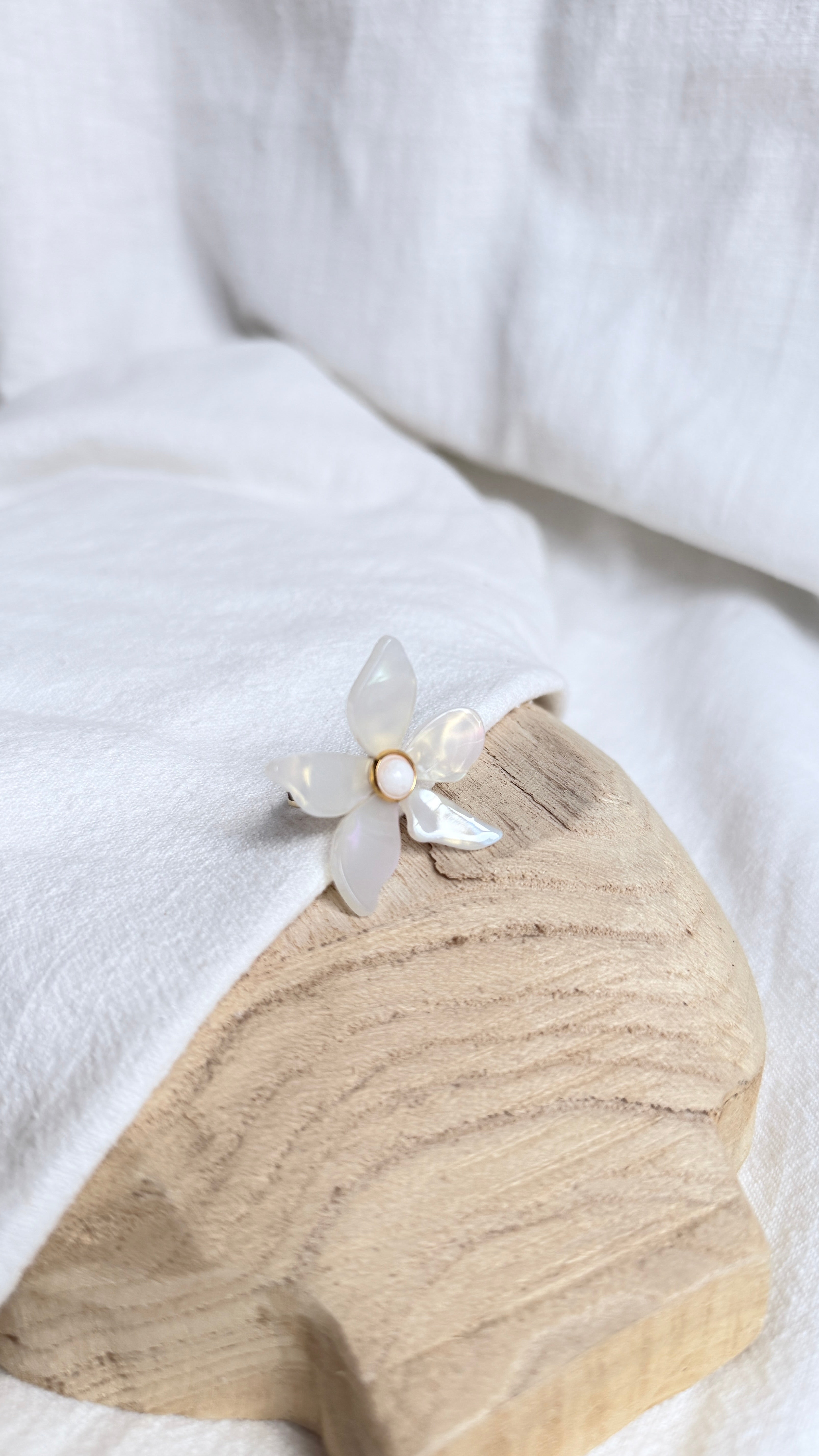 Bague fantaisie fleur blanche