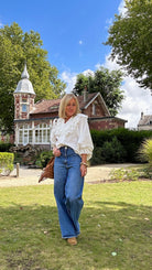 Pensé pour sublimer aussi bien les tenues du quotidien que celles des grandes occasions, FROUFROU séduit par ses détails soignés : un dos structuré par deux pinces, des manches bouffantes resserrées par des poignets froncés, ornés de volants, pour un rappel délicat et raffiné.
