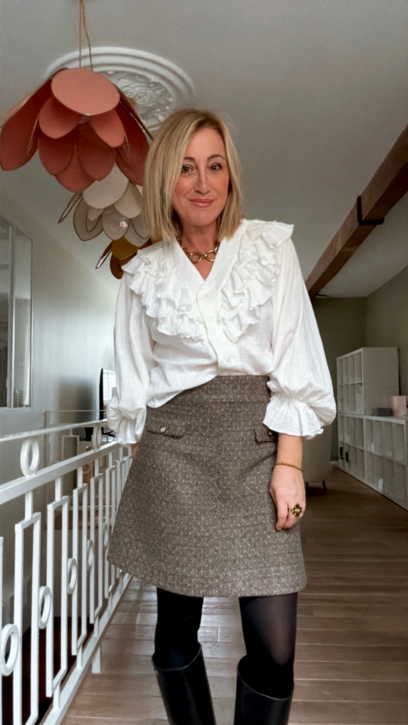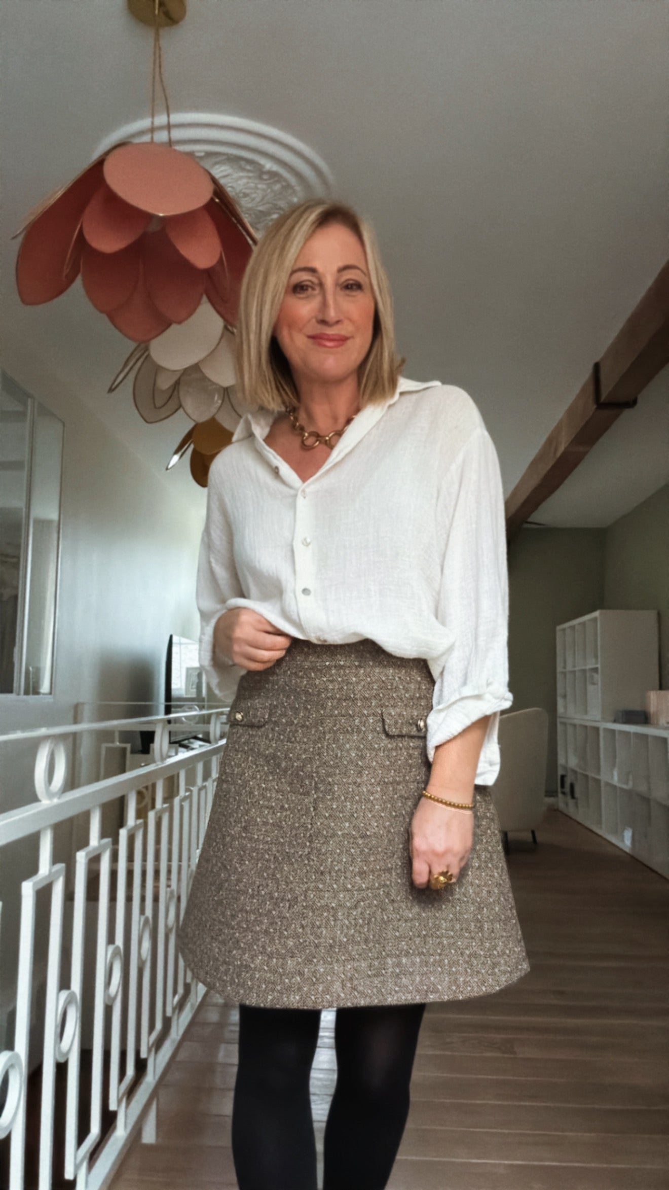Féminine et pleine de caractère, Monica est la jupe trapèze à avoir absolument dans son dressing. Sa ceinture et ses découpes centrales, devant et dos, créent une ligne raffinée. Deux fausses poches sur le devant soulignent le style en apportant une touche couture. Elle se ferme par un zip, invisible ou visible, au dos. Entièrement doublée, elle offre un confort parfait et des finitions impeccables. Monica se distingue également par son ourlet rapporté, un détail qui fait toute la différence. Facile à porter, elle s’adapte à toutes les envies : avec un tee-shirt pour un look décontracté ou une chemise pour une allure plus habillée.