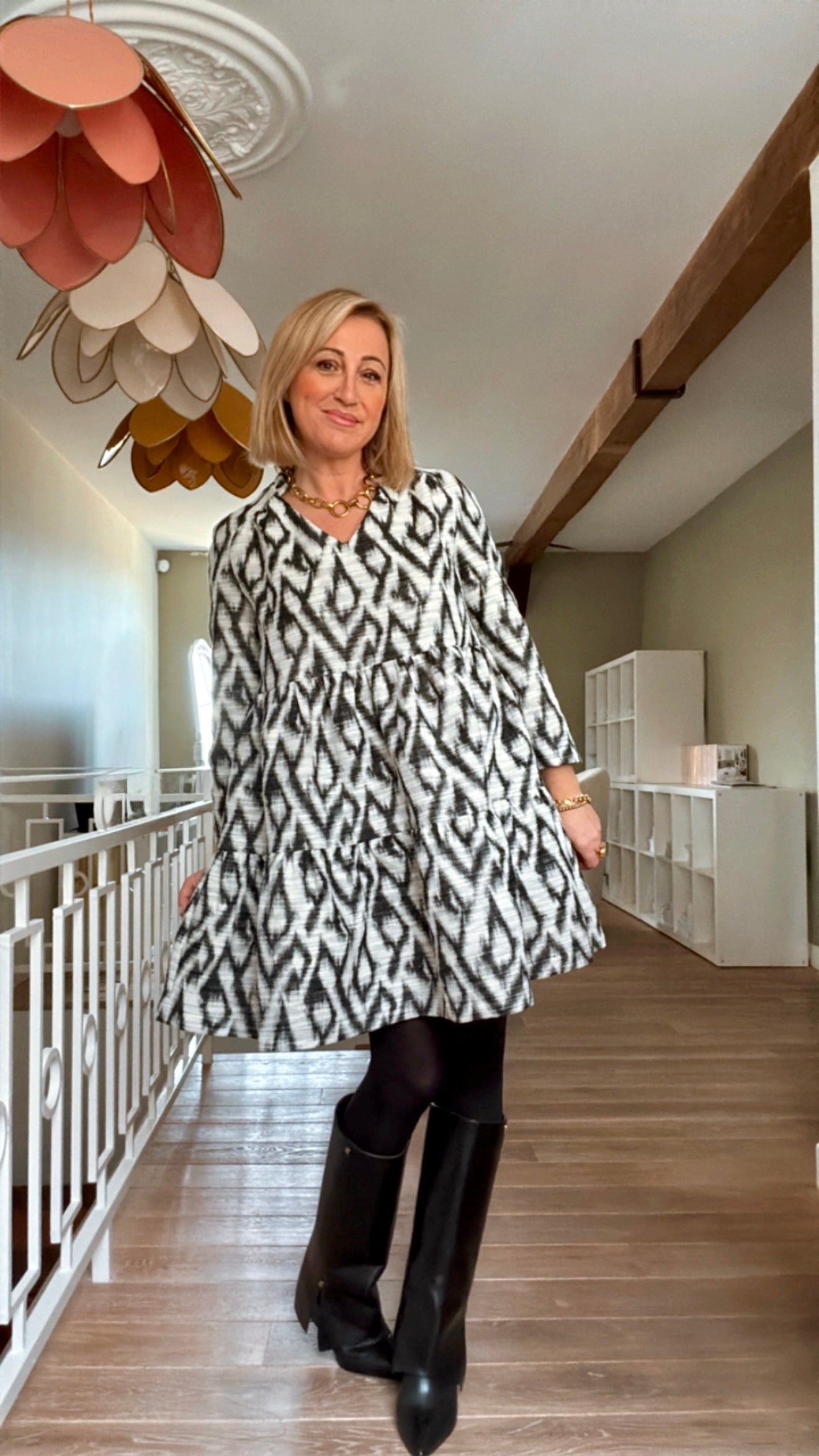 Loulou, c’est la petite robe (ou blouse) pleine de charme et de liberté. À toi de composer ton modèle : volants patineuse ou froncés, col volanté, cravate amovible ou encolure dégagée. Son joli volume et sa coupe structurée lui confèrent une allure à la fois féminine et affirmée. Une pièce incontournable de toute garde-robe, à porter été comme hiver, selon le tissu choisi.