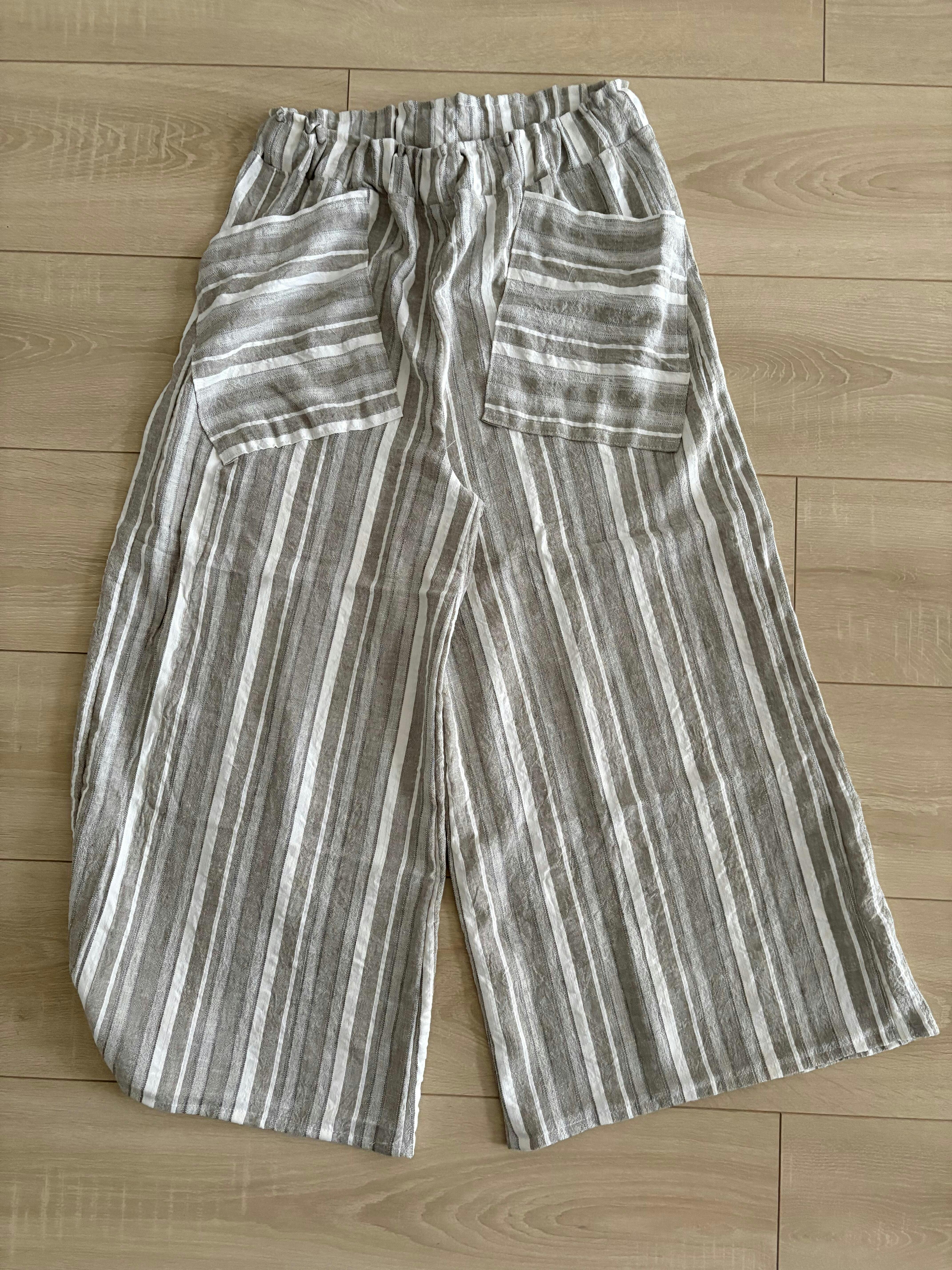 Le pantalon GREJ se distingue par son bas de jambe large, ses revers modulables (visibles ou non), ses poches latérales pratiques et sa taille élastique ultra-confortable. Il incarne à la perfection l’équilibre entre confort et élégance, pour un look moderne et raffiné.
