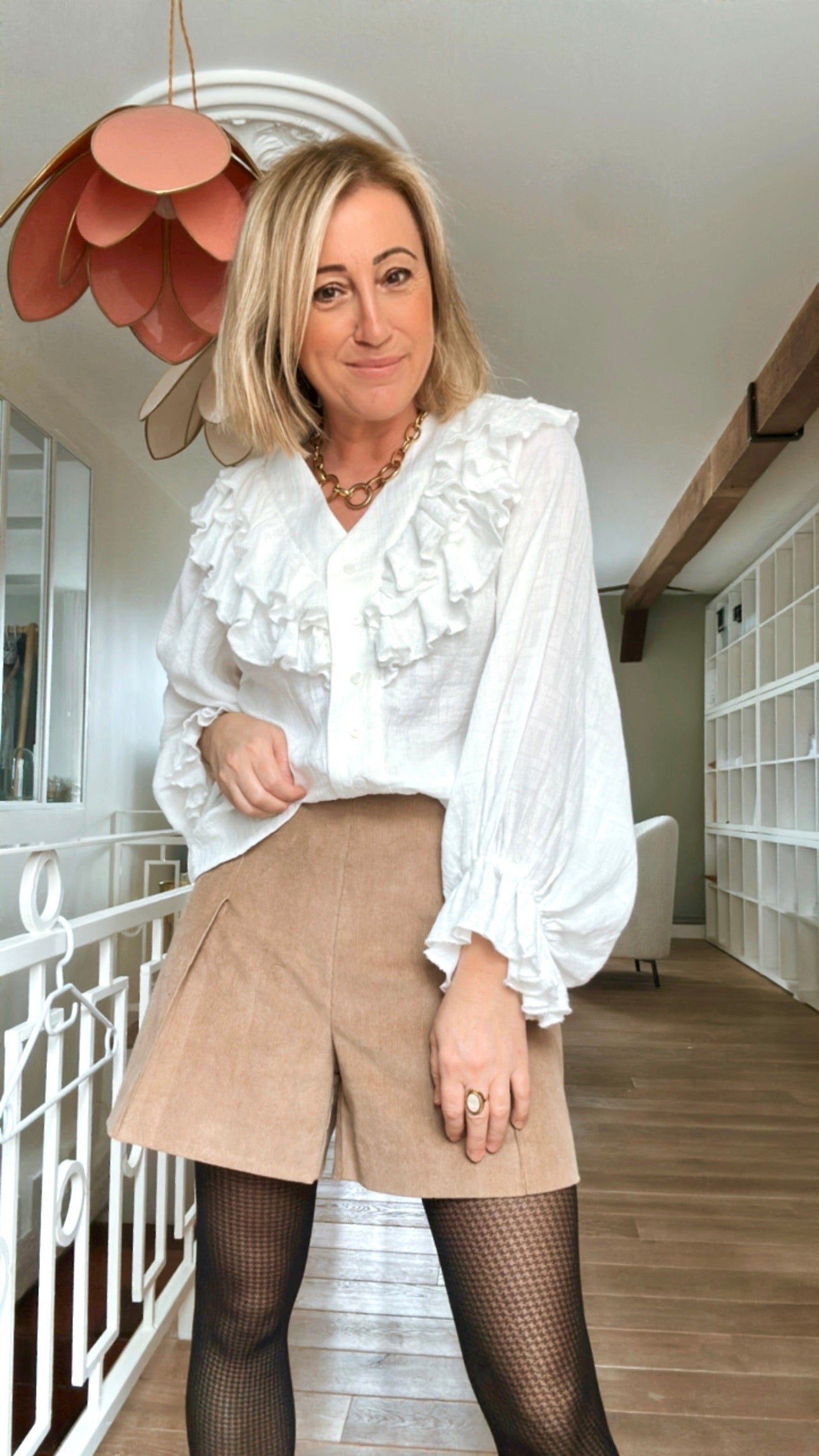 Il peut se décliner en version estivale dans un lin léger ou un coton, ou se réaliser dans un tissu plus chaud comme un tweed ou un lainage pour un rendu chic et confortable. À porter aussi bien avec une chemise fluide pour un look habillé qu’avec un pull douillet ou un simple tee-shirt pour une allure décontractée.