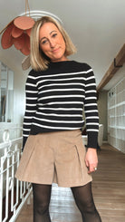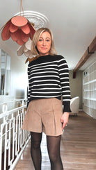 Le short Paola se distingue par sa coupe structurée et ses plis qui apportent du style et de l’allure.