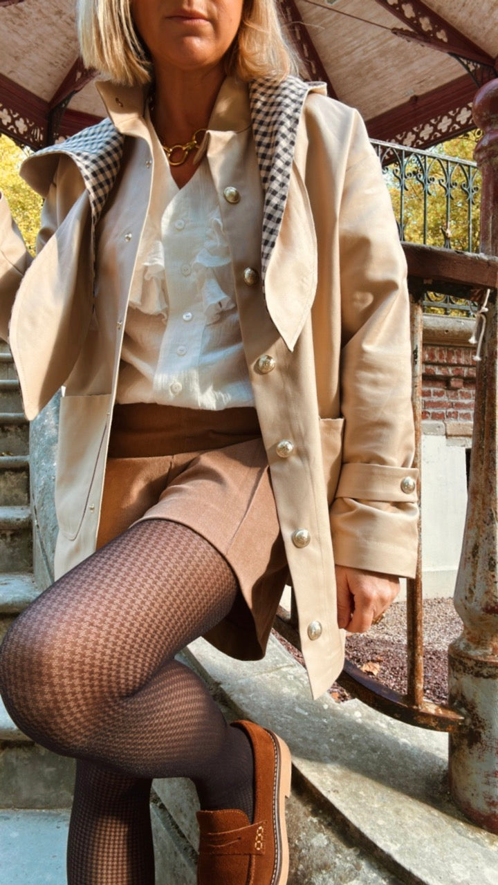 La veste Ophélia est une pièce modulable qui se réinvente selon le tissu choisi : en gabardine, elle devient un imperméable pratique ; en lainage, un petit manteau chaud et confortable ; en coton ou en toile légère, elle prend des airs de trench moderne. Déclinée en version courte ou mi-longue, elle s’adapte à toutes les envies et à toutes les saisons. Sa capuche amovible, fonctionnelle et décontractée permet de varier les styles. Avec ses grandes poches plaquées et ses lignes sobres, Ophélia conjugue élégance et praticité pour devenir une pièce incontournable du vestiaire.